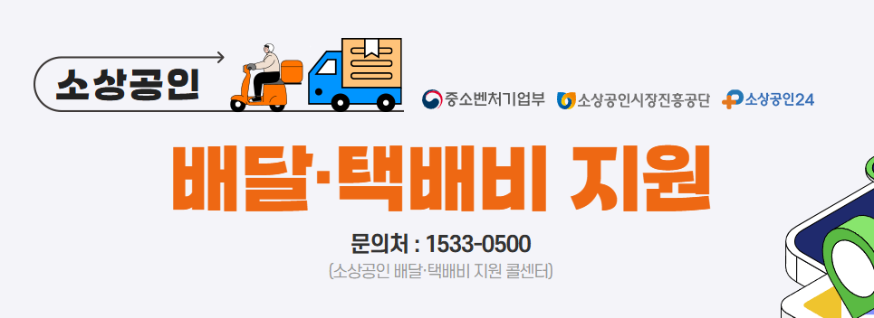 | 지원 대상 | 연 매출 3억 원 이하, 택배/배달 실적이 있고 활동 중인 소상공인(개인 또는 법인) |