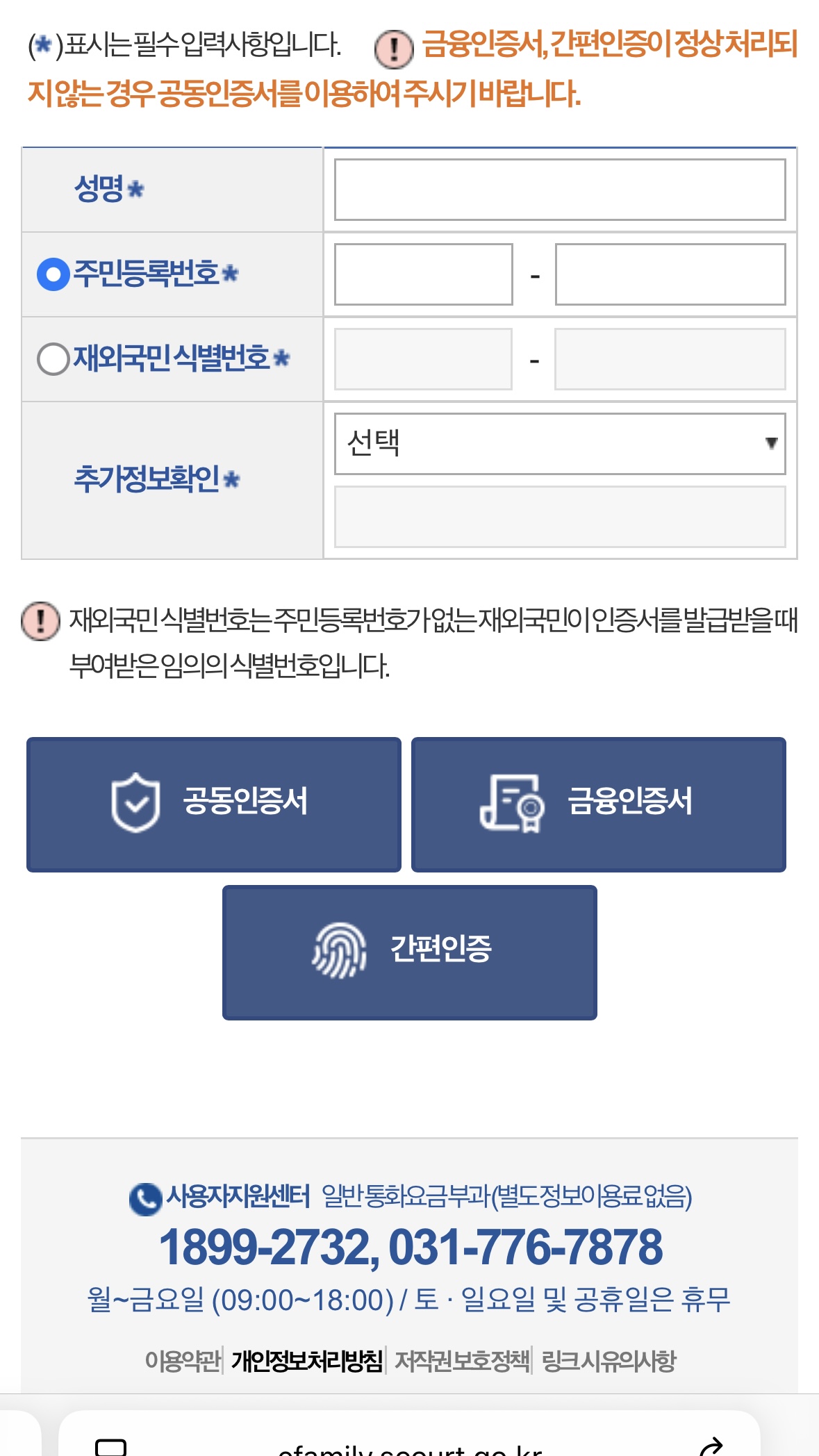 사용자지원센터 1899-2732, (031-776-7878) 월~금요일 (09:00~18:00) / 토 · 일요일 및 공휴일은 휴무 사이트 내 전체검색