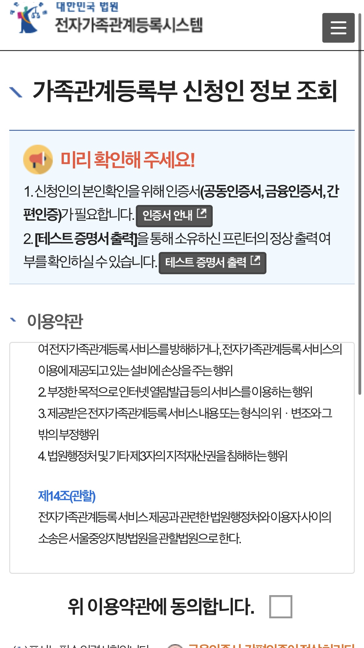 대한민국 법원 전자가족관계등록시스템
