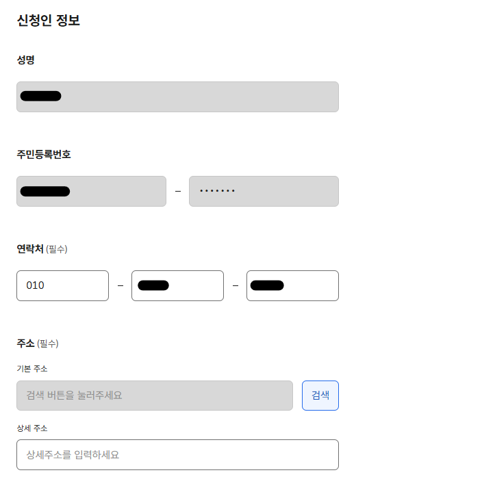 해당 페이지가 열리면, 이름, 주민등록번호, 소속 기관명, 재직 기간 등 필요한 정보를 입력합니다. 이미 정부24에 본인 정보가 등록되어 있다면 대부분 자동으로 불러와지기 때문에, 입력해야 할 항목은 비교적 적습니다.