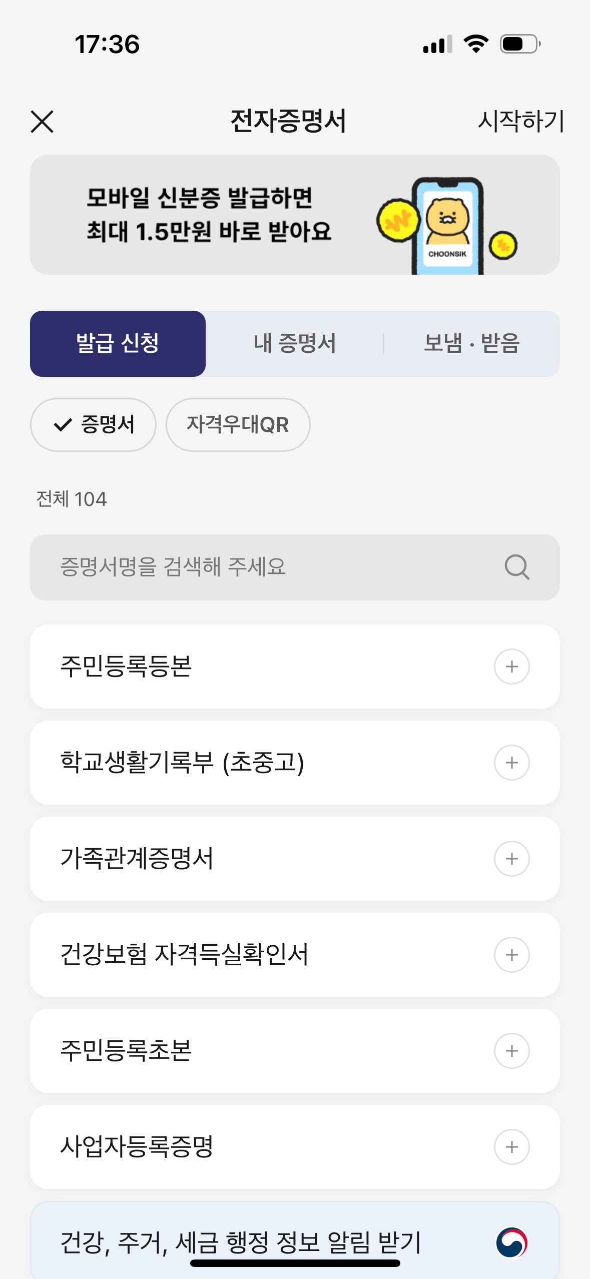 카카오톡 전자문서 주민등록등본 발급방법