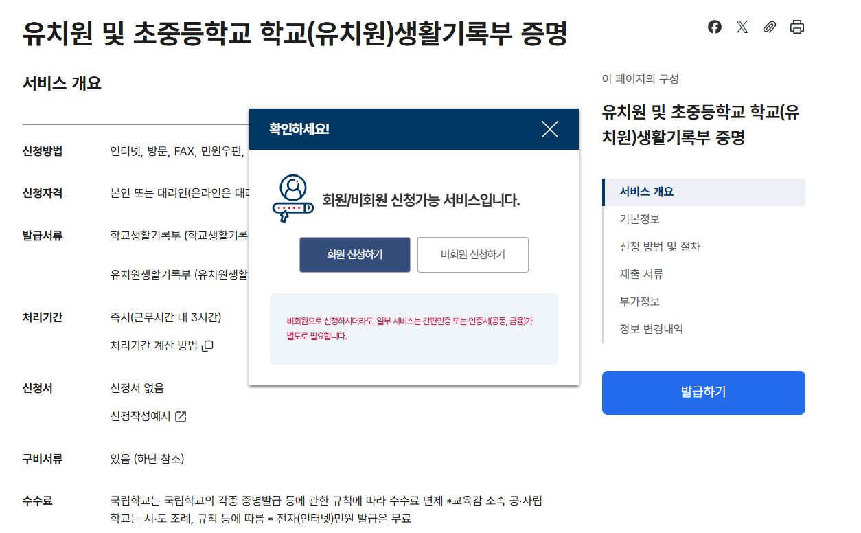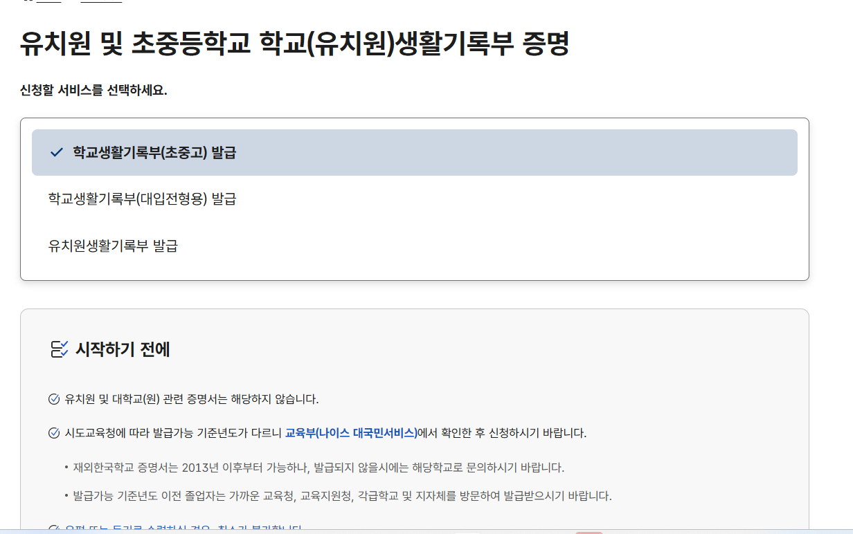 먼저, 나이스(NEIS) 대국민서비스로 발급 받는 방법에 대해 설명해드리겠습니다.