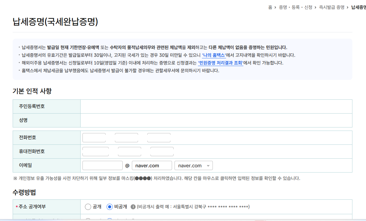 국세완납증명서 발급방법