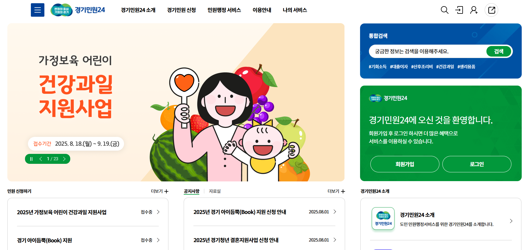 경기도는 2025년 8월 18일(월)부터 9월 19일(금)까지 가정보육 아동에게 신선한 과일을 직접 제공하는 “건강과일 지원사업”을 시행합니다. 이번 글에서는 건강과일 지원사업의 신청 대상, 지원 내용, 신청 방법 등에 대해 자세히 포스팅해보겠습니다.