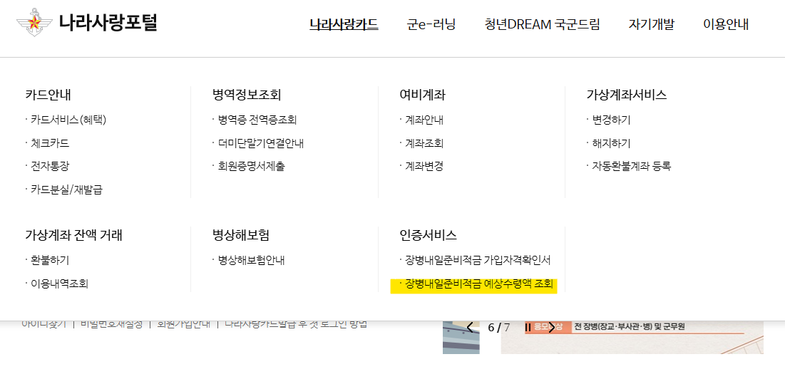 메뉴에서 ‘장병내일준비적금 계산기’ 선택합니다.