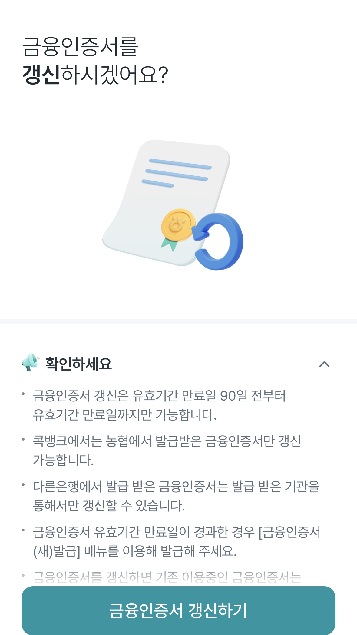 이렇게 해두면 갱신 시기를 놓칠 걱정이 없고, 금융 거래도 중단 없이 안전하게 이어갈 수 있어 더욱 편리합니다.